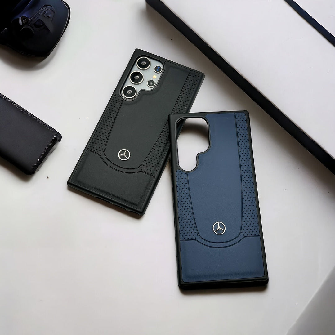 Samsung Galaxy S23 Ultra Merc Dotted Pattern PU Leather Sports Car Logo Case Cover