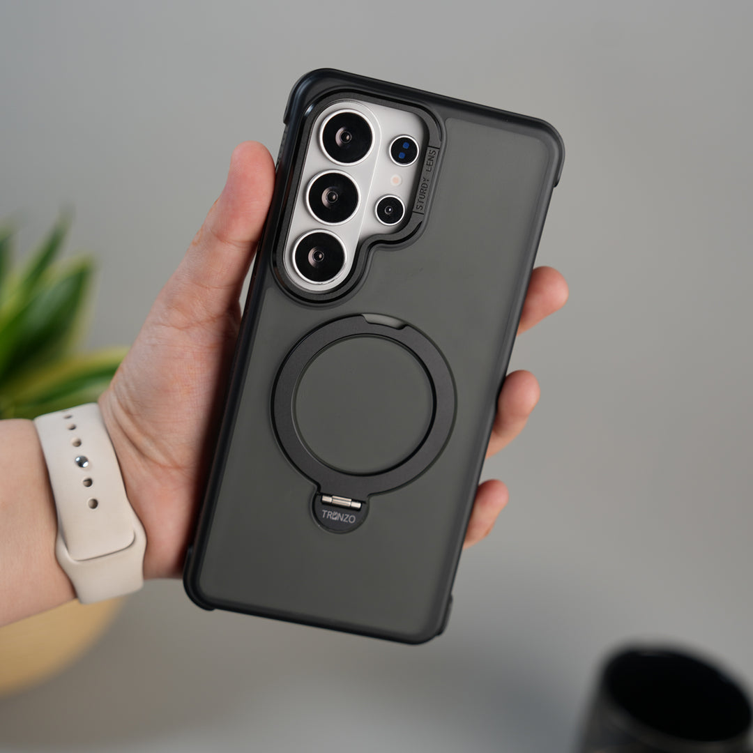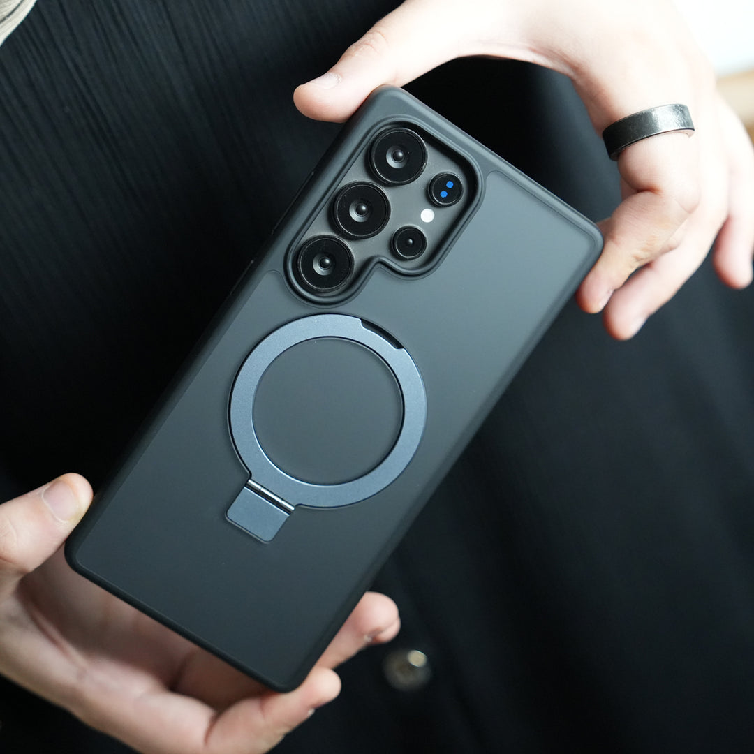 Galaxy S26 Ultra Frosted Case with Built-in Stand | 360° Grip Ring Protective Cover