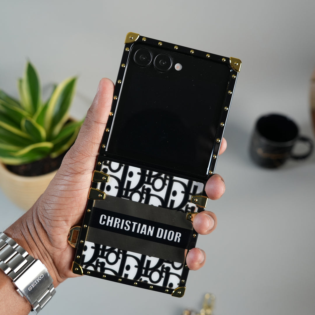 Galaxy Z Flip 7 Luxury CD Trunk Case Cover With Chain
