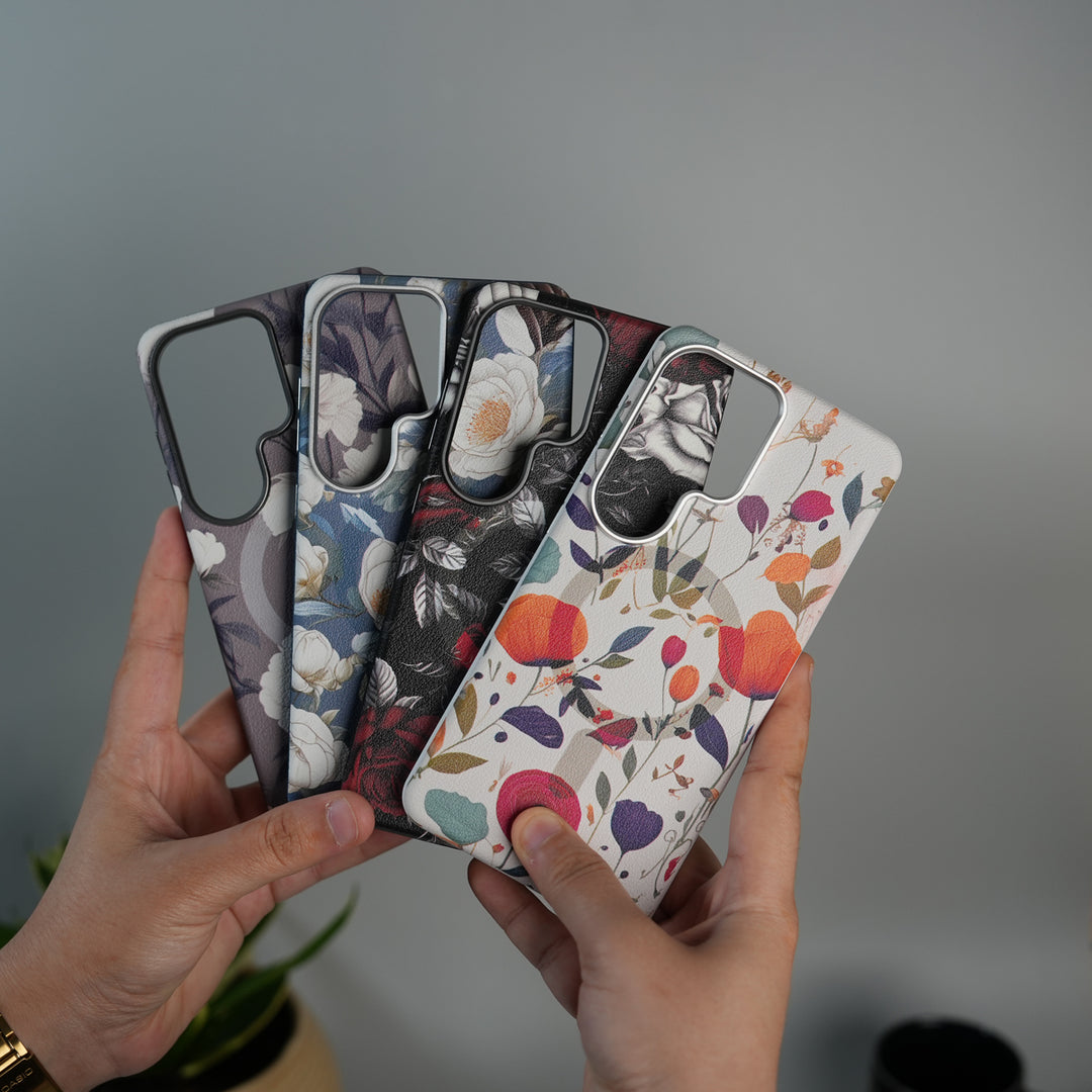 Galaxy S24 Ultra Premium Floral Leather MagSafe Case Back Cover