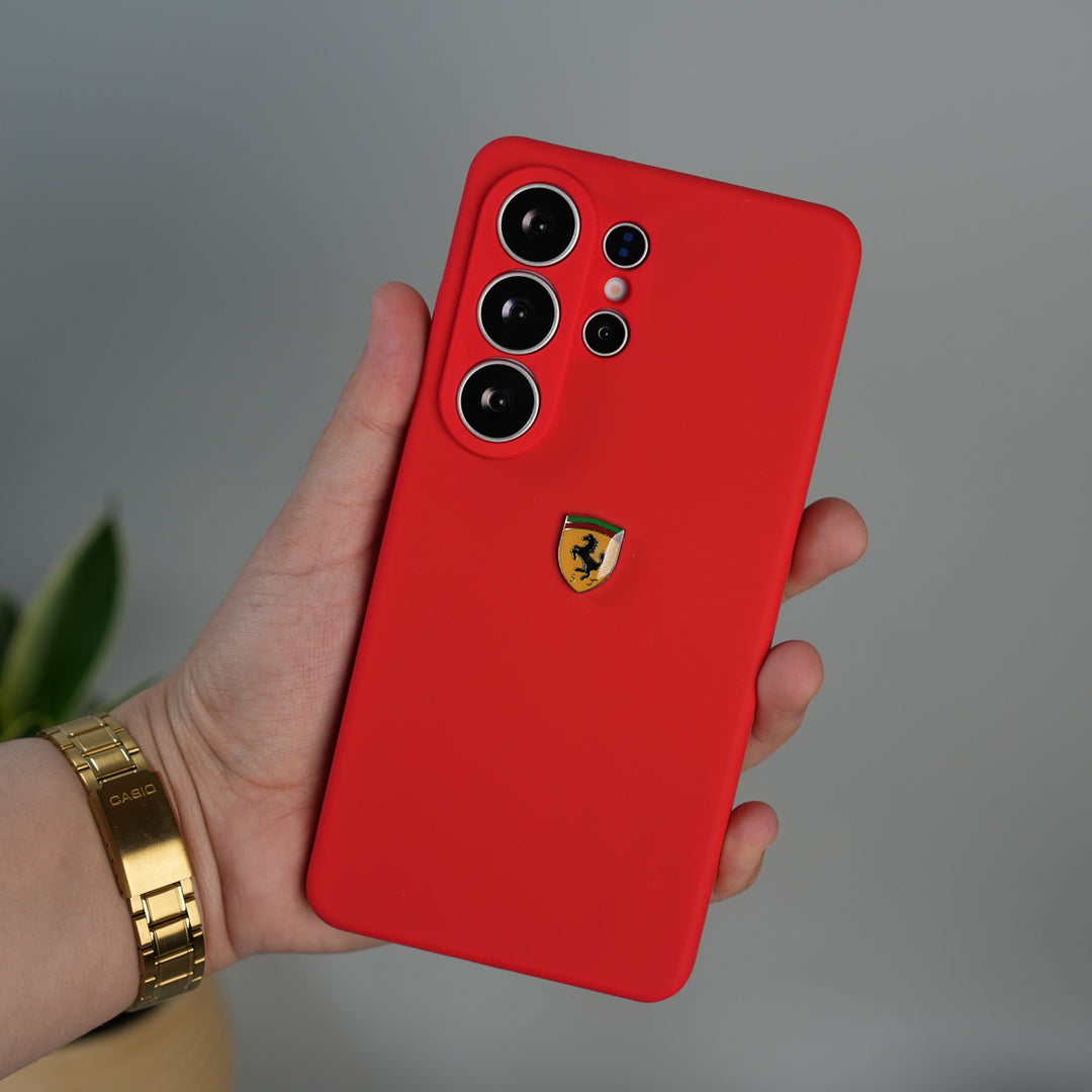 Galaxy S26 Ultra Sports Car Logo Liquid Silicone Case Cover | RED