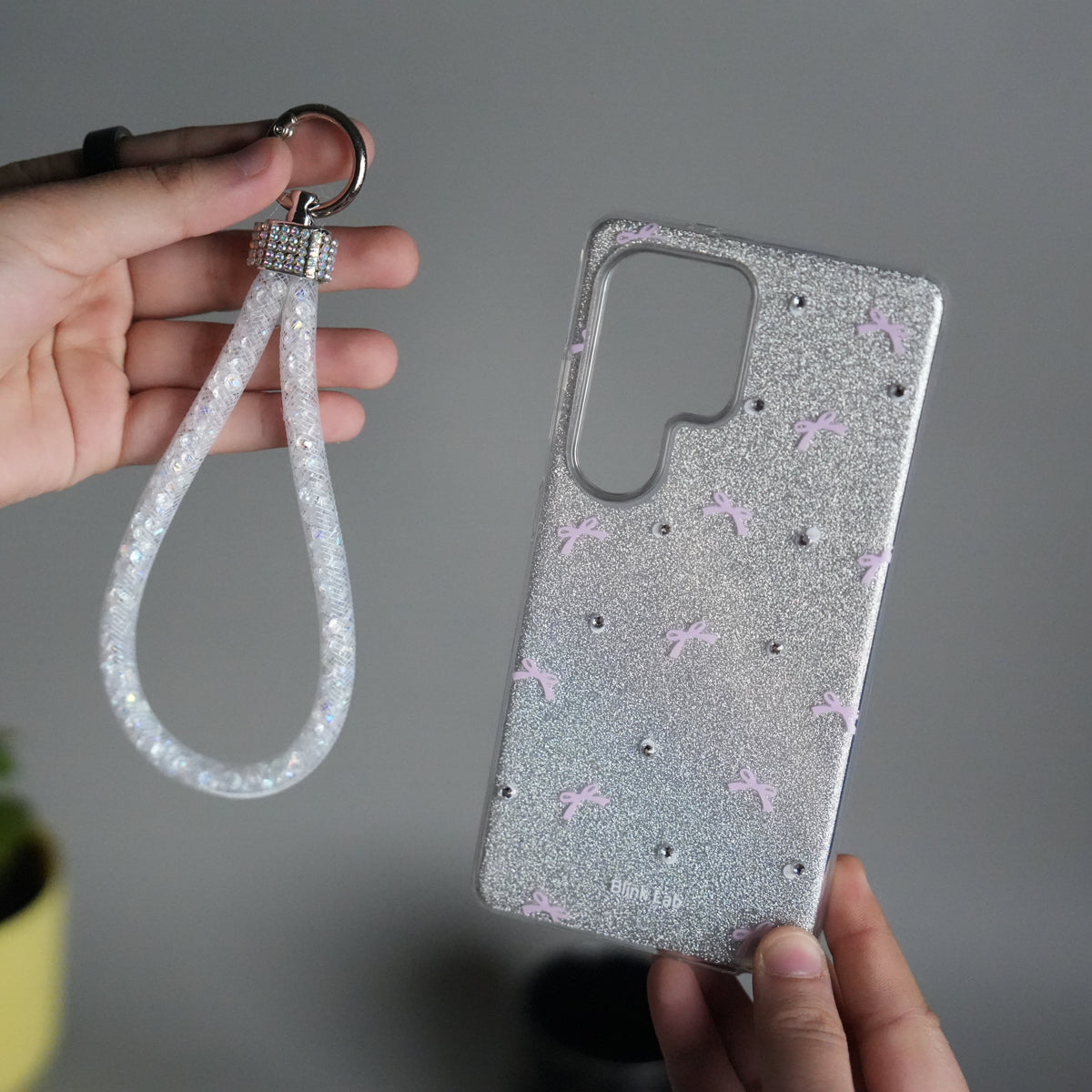 Galaxy S25 Ultra Shimmer Bow Design Case | With Mobile Wrist Holder Charm
