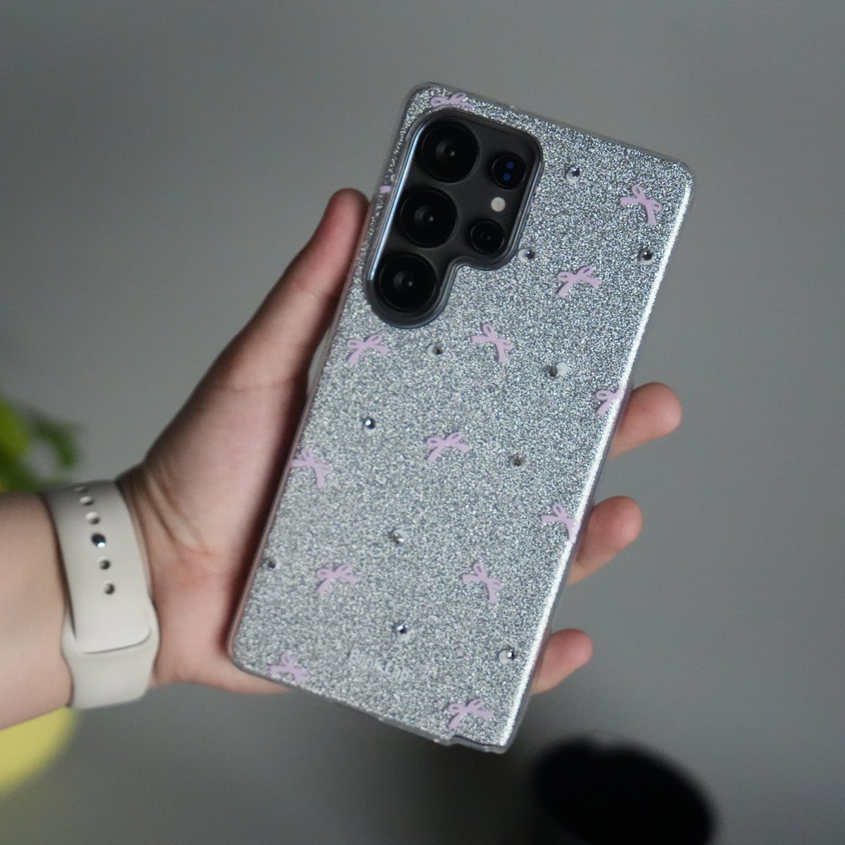 Galaxy S25 Ultra Shimmer Bow Design Case | With Mobile Wrist Holder Ch