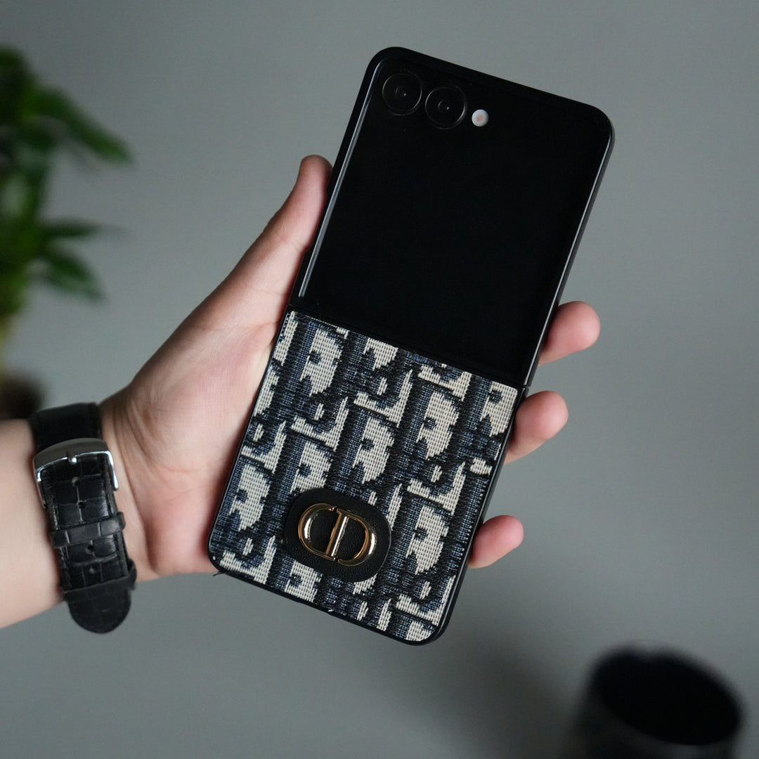 Samsung Galaxy Z Flip 7 Luxury Brand CD Embroidery Case Cover | BLACK