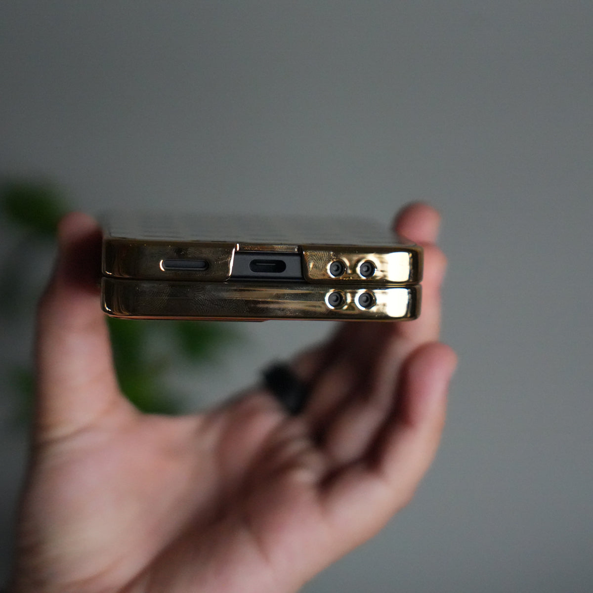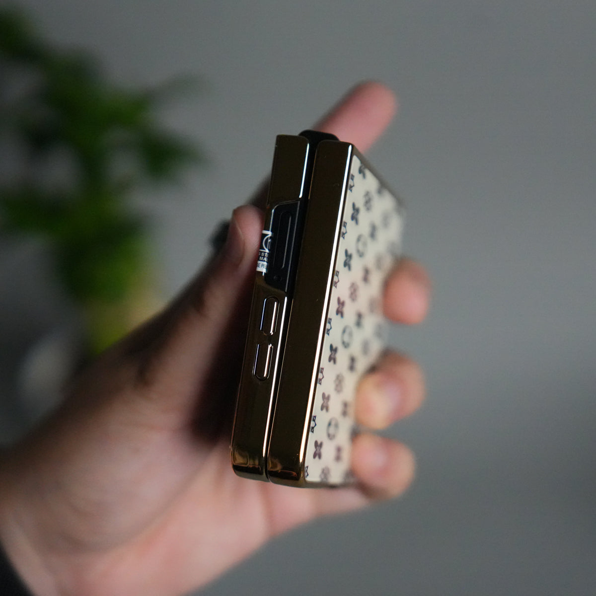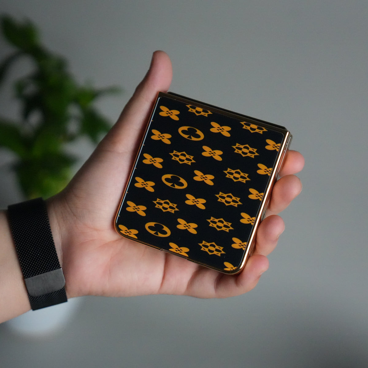 Add a touch of elegance and shine to your Samsung Galaxy Z Flip 7 with this Luxury Glossy Glass Case. Designed with a gold-plated frame and a high-gloss glass back, it combines premium style with durable protection. The designer patterned finish on the lower half gives it a fashionable edge, while the clear glossy glass top highlights your phone’s modern look. Perfect for those who love luxury aesthetics with a mirror-like shine.