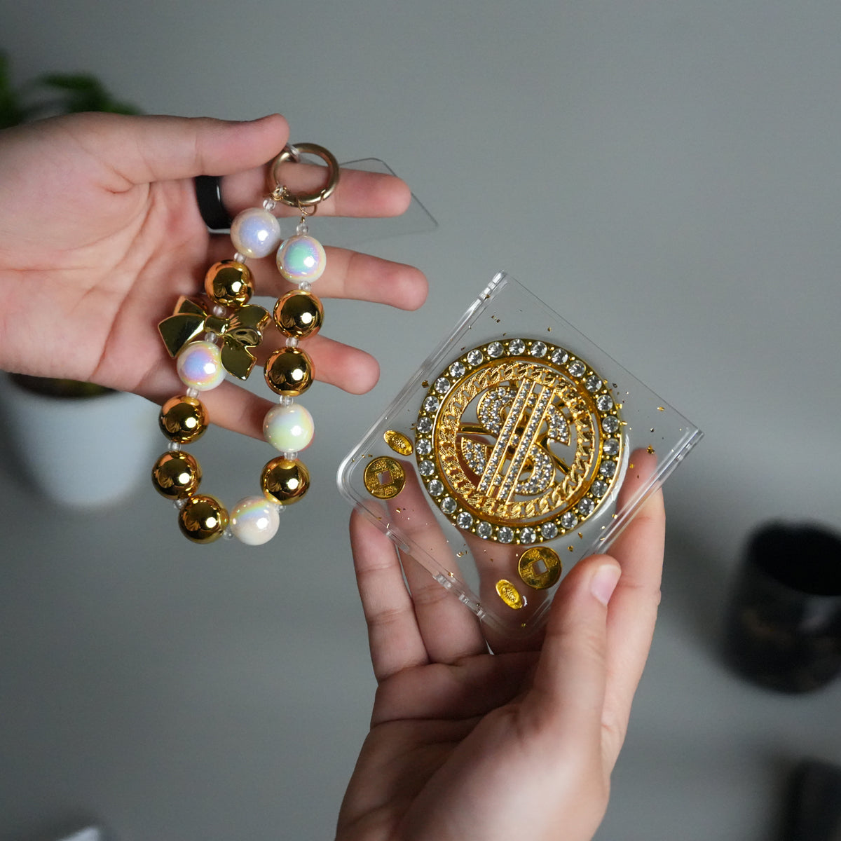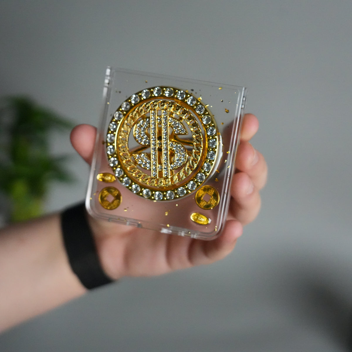 Turn your Samsung Galaxy Z Flip 7 into a true fashion statement with this Luxury Spinning Dollar Bling Case ✨. Designed with a rotating gold dollar emblem surrounded by sparkling rhinestones, this case adds bold personality and glam to your phone. The clear hard shell keeps your Fold visible while offering shockproof protection. The attached pearl charm strap enhances the premium look, making it perfect for parties, selfies, and everyday style.